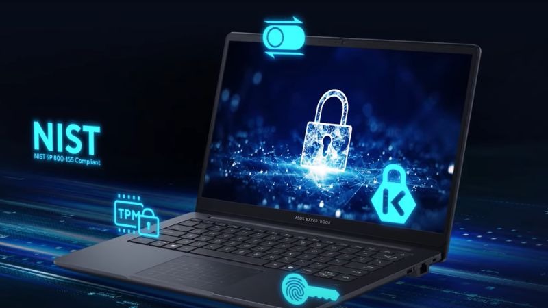 Người dùng văn phòng thường lo lắng về bảo mật dữ liệu. ExpertBook B1 được trang bị cảm biến vân tay, khóa Kensington và nắp che webcam. Dù không quá cao cấp nhưng đủ để an tâm trong môi trường học tập và công việc.