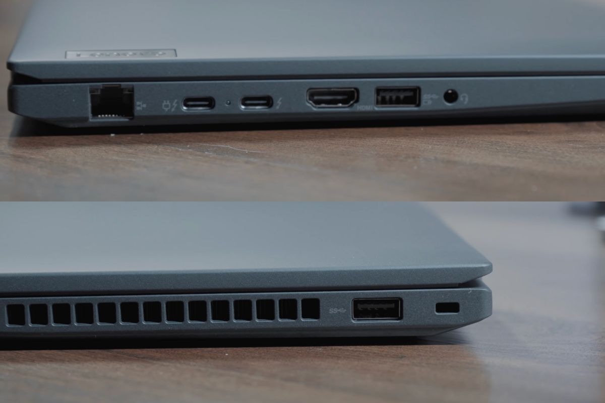 Điểm sáng nổi bật chính là việc Lenovo tích hợp tới hai cổng Thunderbolt 4, vốn nổi tiếng với khả năng truyền dữ liệu siêu nhanh và hỗ trợ sạc lẫn xuất hình ảnh chỉ qua một dây cáp. Nhờ vậy, người dùng hoàn toàn yên tâm làm việc đa nhiệm, kết nối thiết bị ngoại vi mà không lo thiếu cổng.