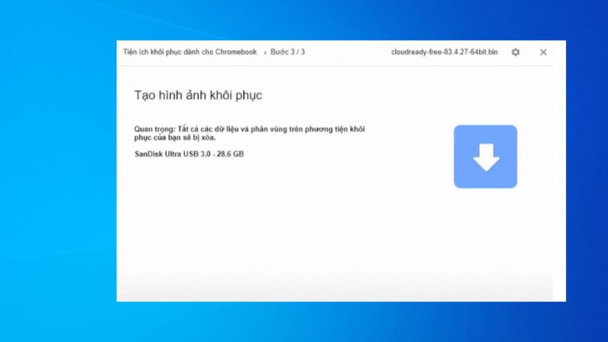 Do công cụ CloudReady USB Maker không còn được hỗ trợ, bạn cần tìm và tải file image (.bin) của CloudReady Home Edition từ các nguồn trên mạng. Lưu file này về máy tính Windows.