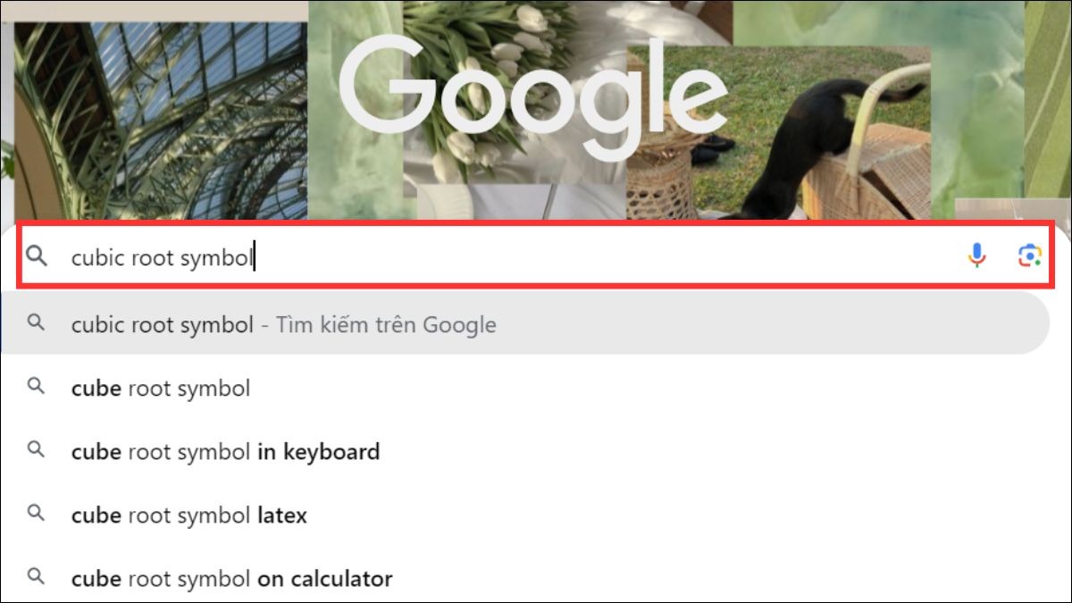 Bước 1: Tìm kiếm trên Google với từ khóa ký tự căn bậc ba hoặc cubic root symbol.