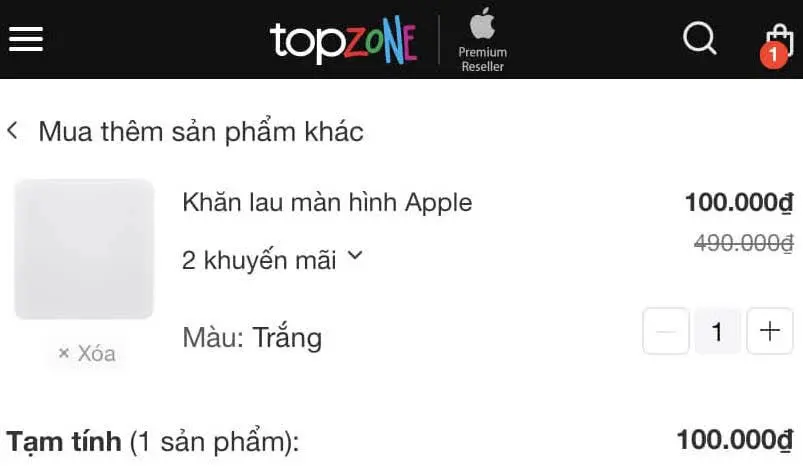 Tuy nhiên trong vài ngày gần đây, iGiẻ lại trở thành món hàng “hot hit” trên các hội nhóm Apple và được nhiều người săn đón. Không phải do chiếc khăn này bỗng có thêm tính năng mới hay gì cả, mà tất cả bắt đầu từ màn giảm giá “sập sàn” của hệ thống cửa hàng Topzone trực thuộc Thế Giới Di Động, đưa sản phẩm từ 490.000đ trở về còn… 100.000đ.
